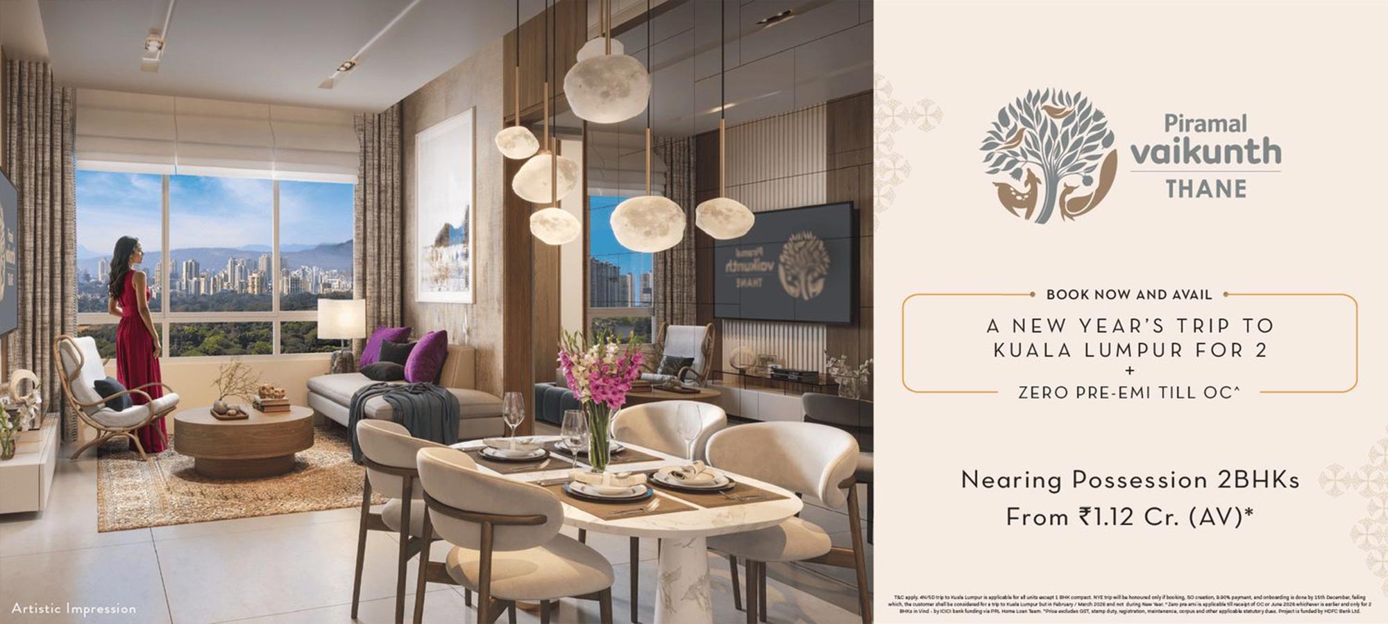 Sprawling across a vast expanse of ~32 acres, Piramal Vaikunth is a community development comprising of lush green spaces complemented with ultra-modern amenities. Based on the concept of Biophilia, Piramal Vaikunth offers open spaces that connect you with nature which ensures a well balanced lifestyle. Experience the magnificent landmark of luxury, in Balkum, Thane - the epicenter of seamless connectivity with an upcoming metro line, upgraded lifestyle & commercial centers..